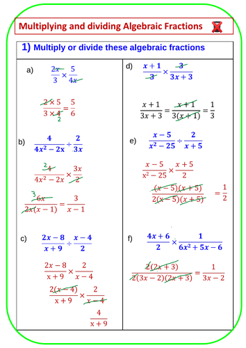 Multiplying And Dividing Algebraic Fractions Worksheet Tes